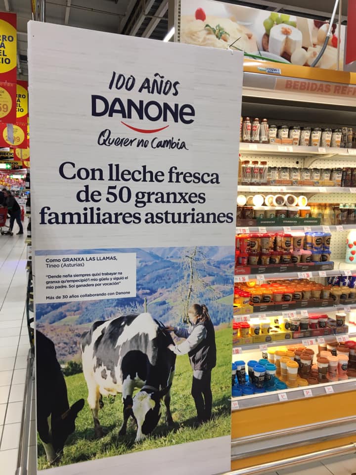 Danone anicia l'usu del asturianu na publicidá de los sos productos en dellos centros comerciales . Nesti casu ye prestoso dir al centru comercial Alcampo del Nalón y topar una multinacional qu'usa l'asturianu na so actividá comercial y nes campañes publicitaries, dándo-y normalidá a la llingua asturiana. ¡Norabona Danone!
